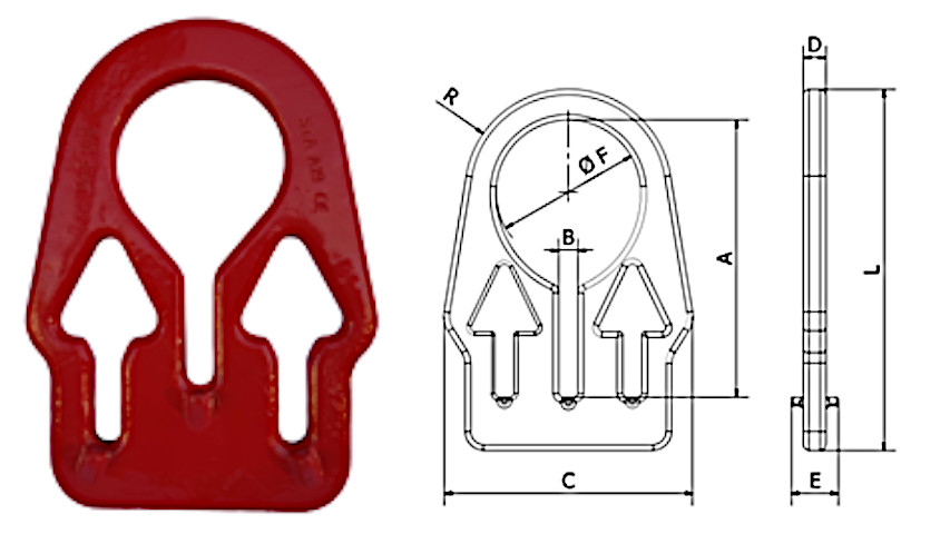 | E [mm] | Ø F [mm] | R [mm] | D [mm] | A [mm] | B [mm] | C [mm] | L [mm] | |||||